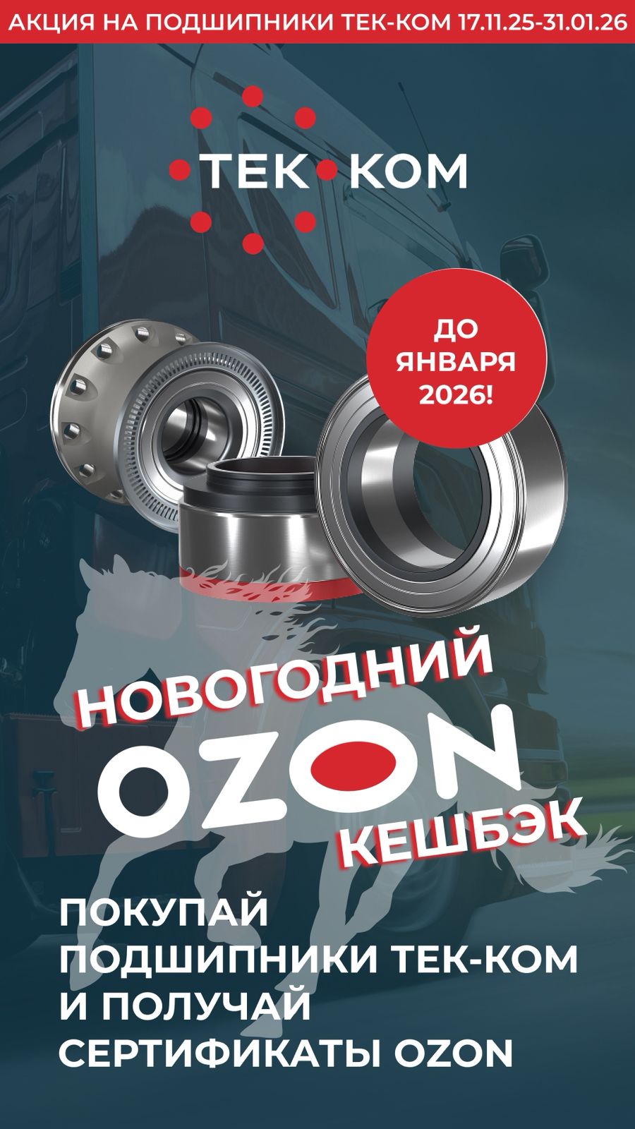 Уважаемые партнеры! С 17 ноября по 31 января 2026г. покупайте любую продукцию бренда ТЕК-КОМ в ассортименте ТruckMotors и получайте отличные подарки - сертификаты OZON!