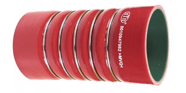 Для производства патрубков интеркулера бренда ПТРТИ применяется внутренний слой из материала FMVQ (фторсиликоновая резина) с высокой химической стойкостью к агрессивным веществам (в том числе охлаждающая жидкость), термостойкостью от -50°С до +230°С. Прочный нитяной каркас состоит из 5-ти промежуточных слоев и наружный слой из материала MVQ (кремнийорганическая резина) с высокими прочностными свойствами и термостойкостью -50°С до +200°С. Эксплуатационные свойства данной конструкции в 3 раза выше, чем патрубки из стандартной резины, сохраняют эластические свойства как при минусовых, так и при экстремально высоких температурах.